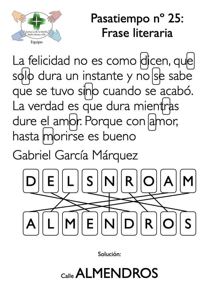 Solución al pasatiempo nº 25 4 Dic 2023 ~ farmaciadelamulilla Comparte esto: Haz clic para compartir en X (Se abre en una ventana nueva) X Haz clic para compartir en Facebook (Se abre en una ventana nueva) Facebook Me gusta Cargando... Relacionado Publicado por farmaciadelamulilla En este espacio trataremos de compartir contenidos con la humilde intención de ayudar a mejorar la salud de nuestros pacientes Ver todas las entradas de farmaciadelamulilla
