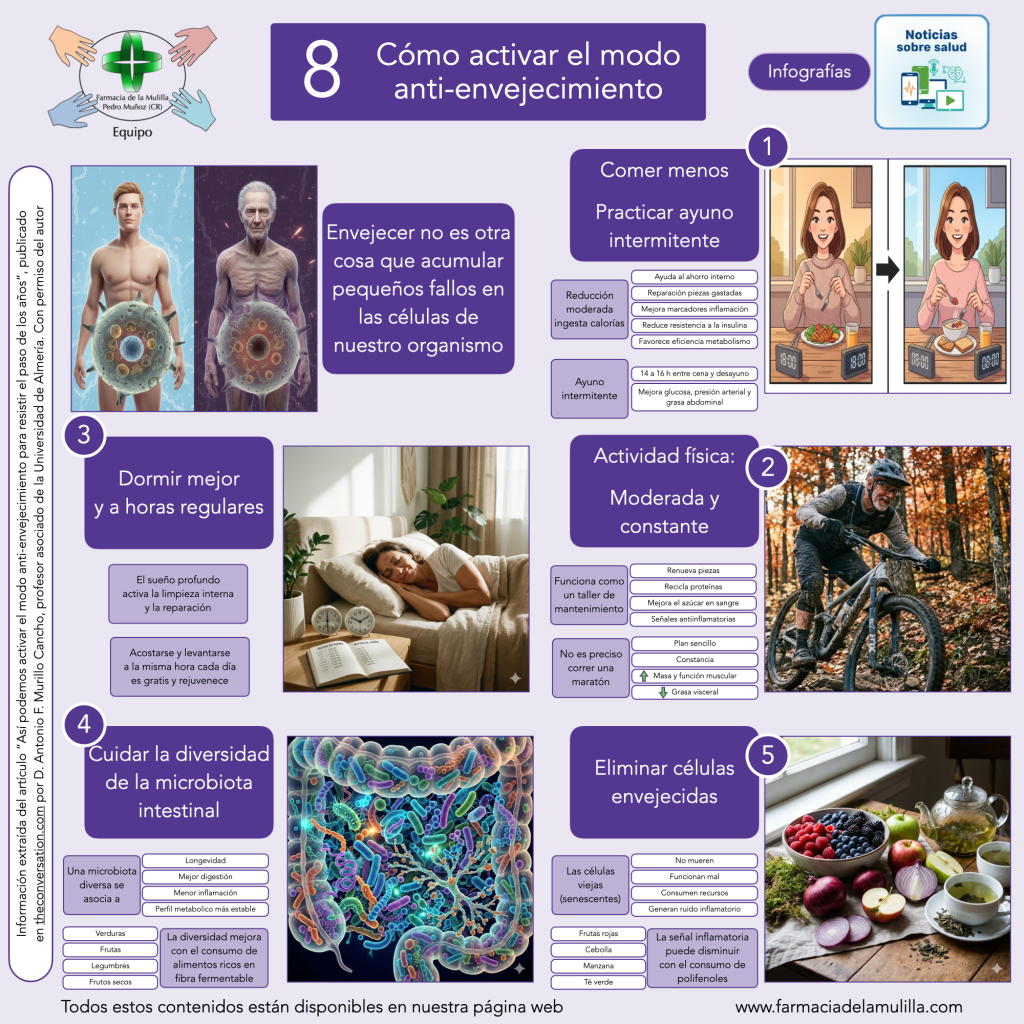 El pasado 8 de Enero de 2026, el profesor D. Antonio F. Murillo publicó en la página web de información académica theconversation.com un artículo sobre cómo activar el modo anti-envejecimiento.