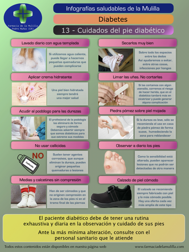 Infografia Diabetes 13 – Cuidados del pie diabetico 3 Oct 2017 ~ farmaciadelamulilla Publicado por farmaciadelamulilla En este espacio trataremos de compartir contenidos con la humilde intención de ayudar a mejorar la salud de nuestros pacientes Ver todas las entradas de farmaciadelamulilla